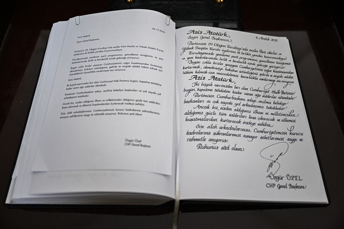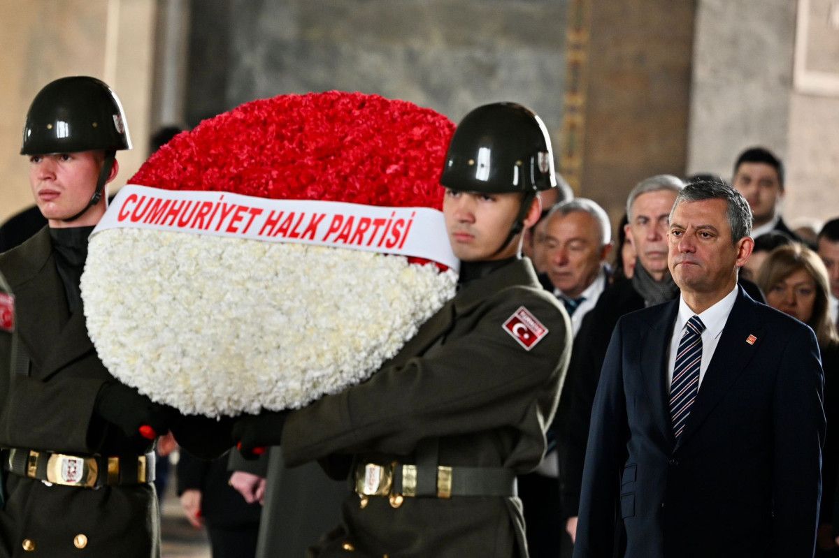 Özel, beraberindeki PM, YDK üyeleri ve milletvekilleriyle Aslanlı Yol’dan yürüyerek Atatürk’ün mozolesine çelenk bıraktı, saygı duruşunda bulundu.