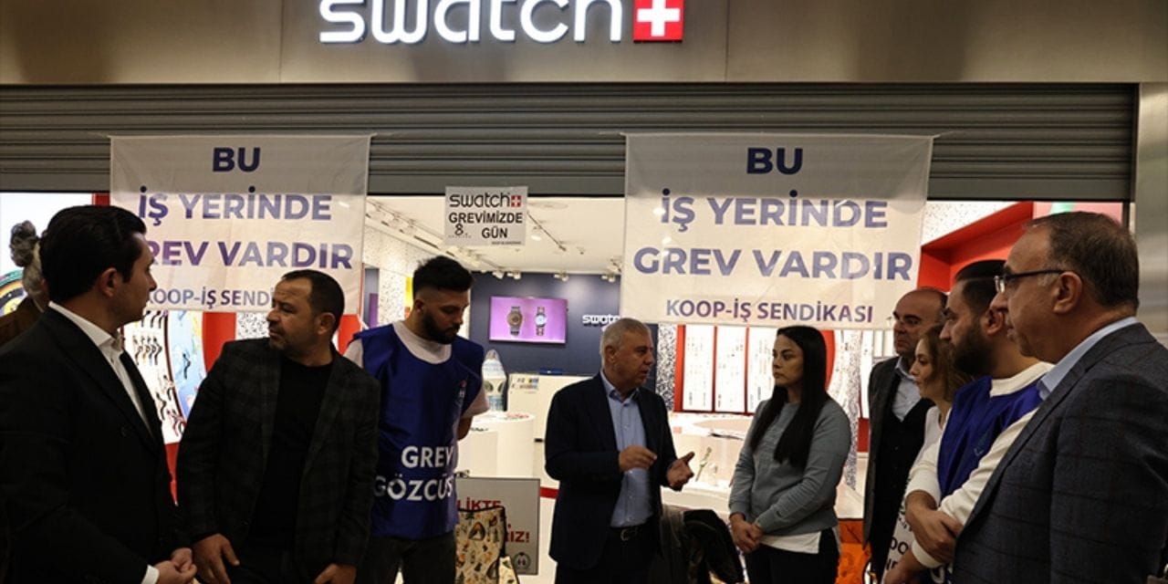 Türk-İş konfederasyonuna bağlı Koop-İş Sendikası ile işveren arasında yürütülen toplu iş sözleşmesi görüşmelerinin tıkanması üzerine, Swatch Group Türkiye bünyesindeki 15 mağazada çalışanlar 14 gündür grevde.